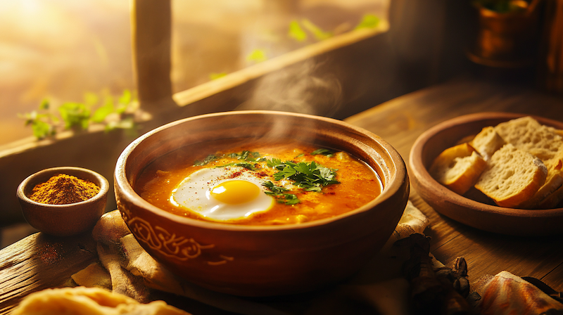 Traditional chicken salad with garlic, grounded coriander and saffron.